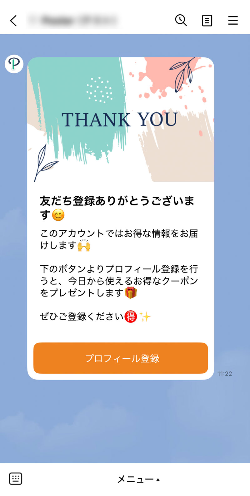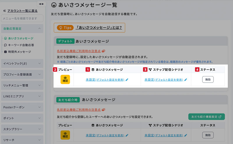 友だち紹介から登録したユーザーへのあいさつメッセージを設定できます。