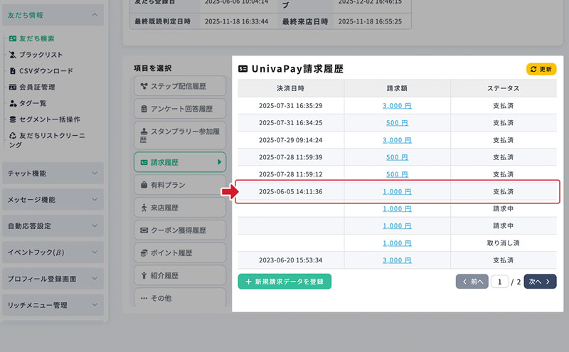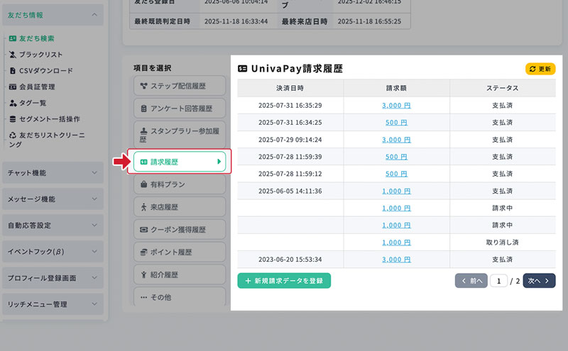請求情報を確認したい場合は、一覧から確認したいデータを選択します。