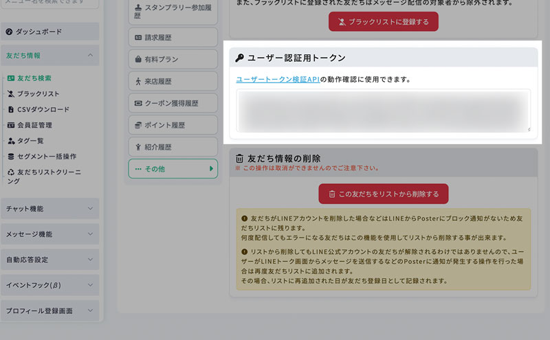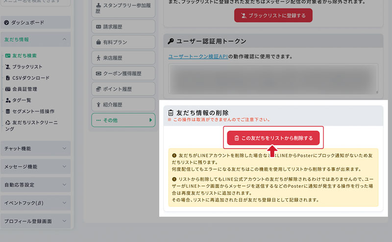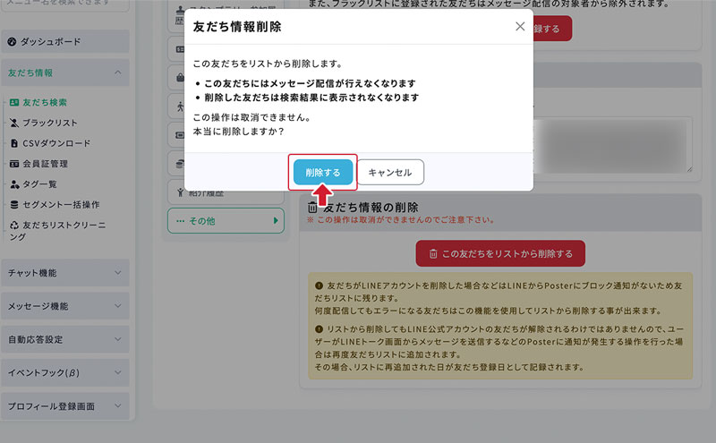 ※ 友だちがLINEアカウントを削除した場合などはLINEからPosterにブロック通知がないため友だちリストに残ります。