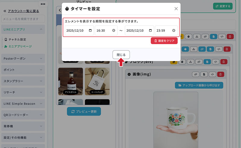 要素の公開日時を設定できます。