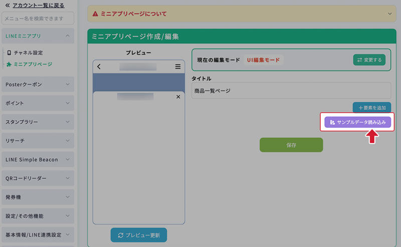 エクスポートしたミニアプリページのデータをインポートできます。