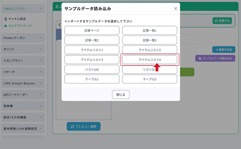 この例では「アイテムリスト4」を選択します。